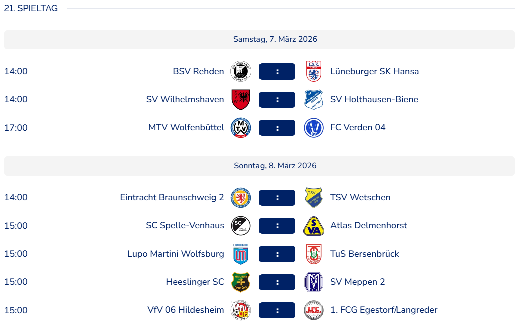 Sonntag, 1. März 2026 · 15:00 UhrOberliga Niedersachsen, 20. Spieltag