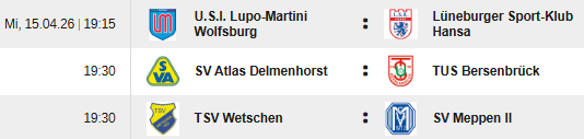 Samstag, 11. April 2026 · 15:00 UhrOberliga Niedersachsen, 25. Spieltag