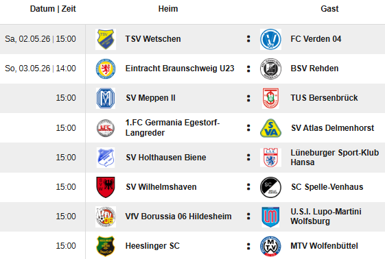 Freitag, 24. April 2026 · 20:00 UhrOberliga Niedersachsen, 27. Spieltag