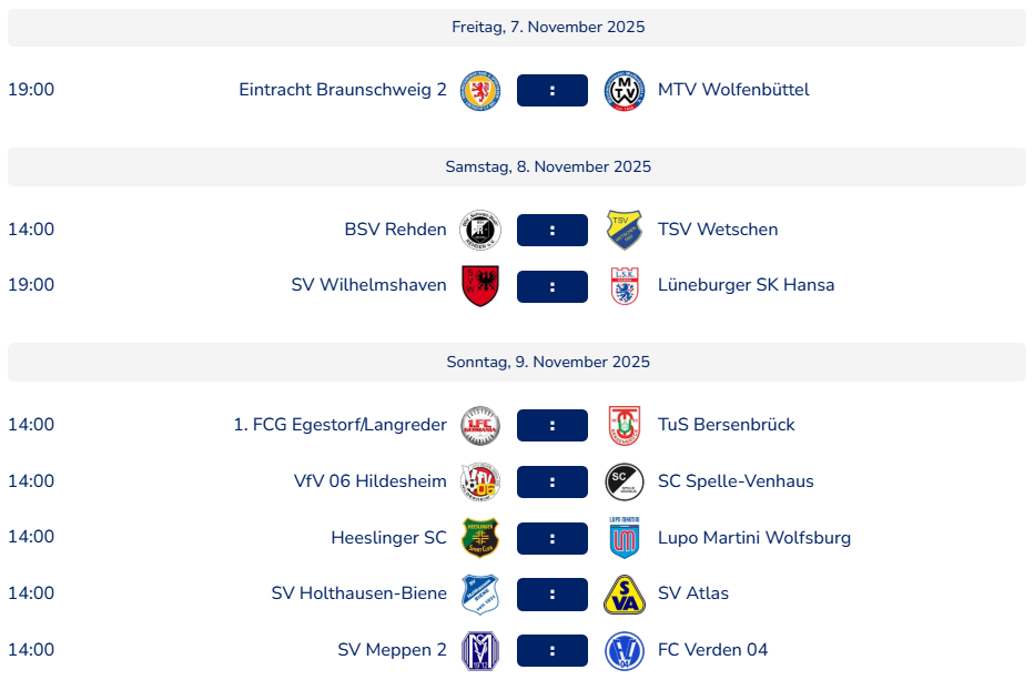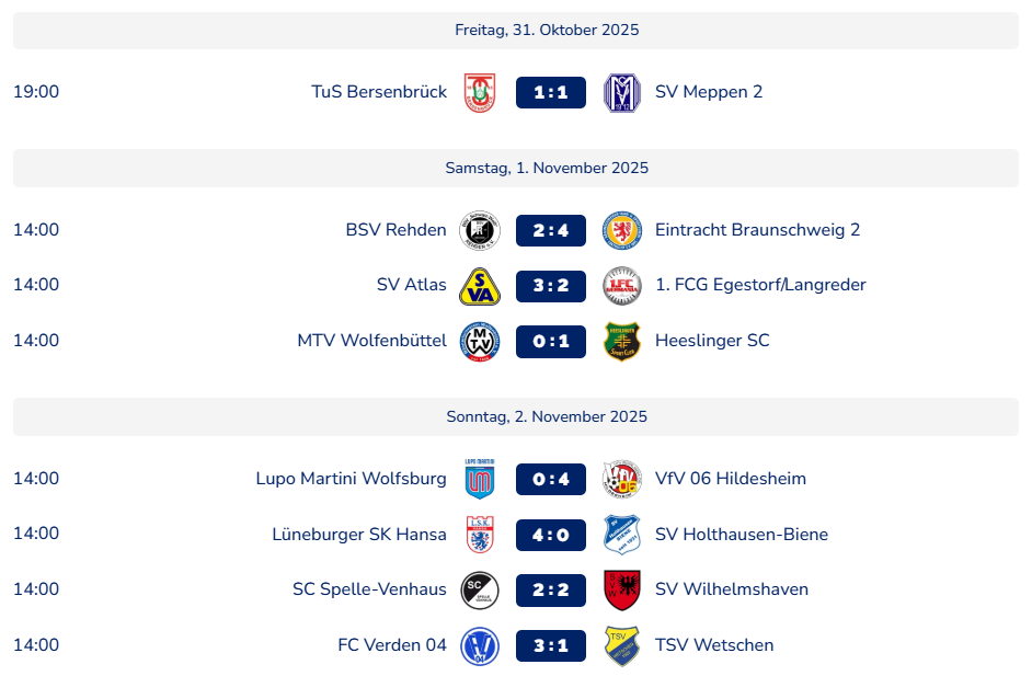 Samstag, 1. November 2025 · 14:00 UhrOberliga Niedersachsen, 13. Spieltag