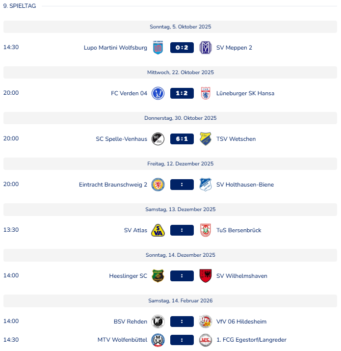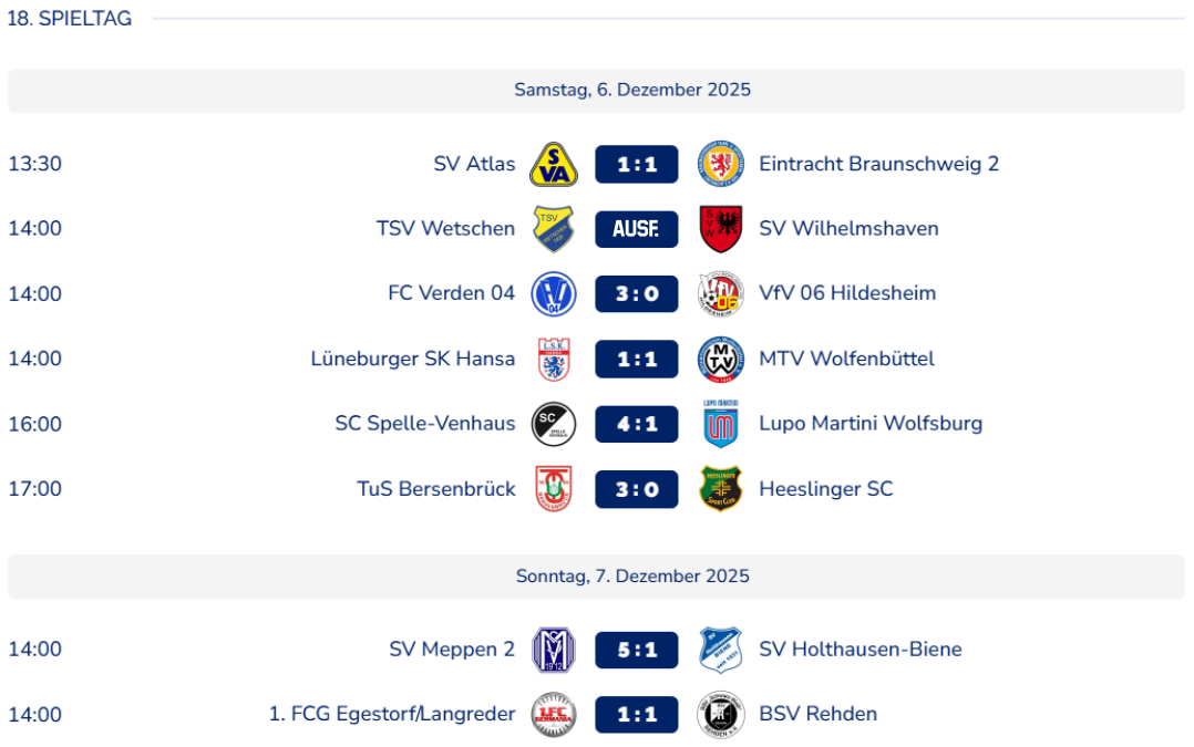 Samstag, 6. Dezember 2025 · 13:30 UhrOberliga Niedersachsen, 18. Spieltag