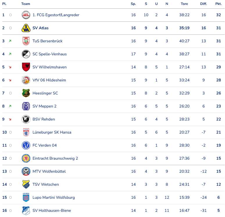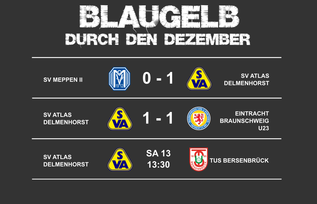 Die nächste Chance auf einen Heimsieg bietet sich bereits am kommenden Samstag. Dann empfängt Atlas im Nachholspiel vor der Winterpause den TuS Bersenbrück. Anstoß ist um 13:30 Uhr, da das Flutlicht noch nicht installiert ist.